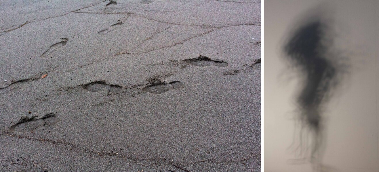 Nemmeno i piccoli reperti recuperati durante quelle esplorazioni fotografiche riescono a trovare un senso nella loro materialità. Piuttosto, come ombre, si limitano a suggerire l'atmosfera ineluttabile di quei momenti di passaggio.